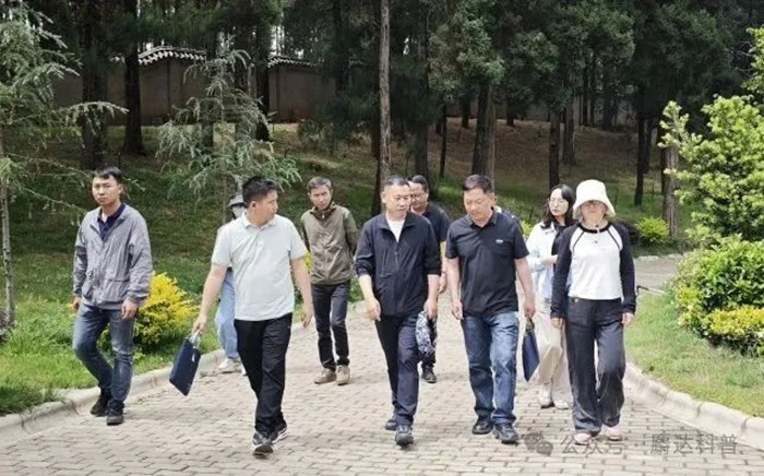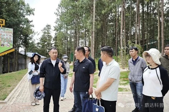 2025年5月14日,陽宗管委會朱主任率隊蒞臨我麝達科普基地,對宜良縣國有花園林場的林下經濟發展情況,特別是林麝養殖和林下中藥材種植項目進行了實地考察。
